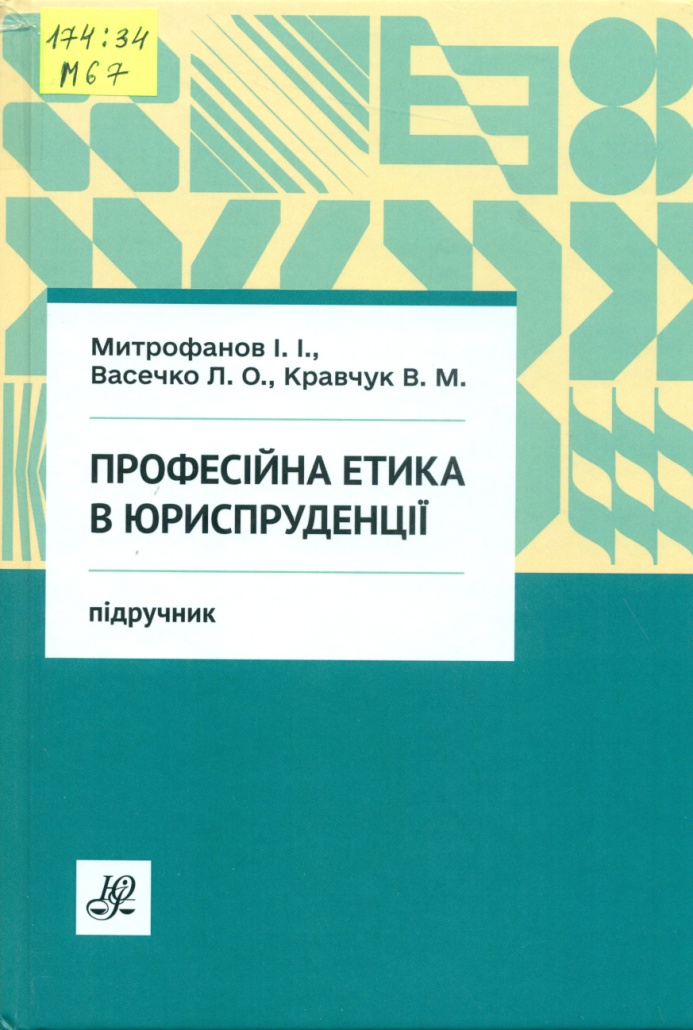 етика в юриспруденції [Текст] : підручник / І. І. Митрофанов, Л. О. Васєчко, В. М. Кравчук. – Київ : Юрінком Інтер, 2024. –