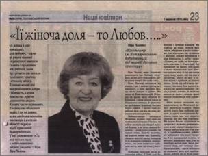 Москалюк, П. М. "ЇЇ жіноча доля-то Любов ... " [Текст] : [Віра Чазова] / бесiду вiв П. М. Москалюк // Полтавський вісник.